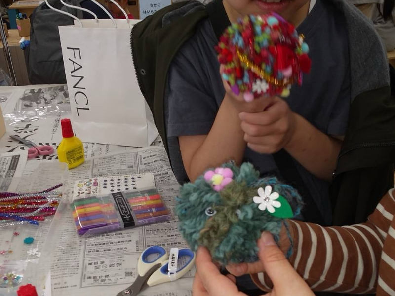 「毛糸のボンボン玉」は、自分の好きなキャラクターなど、合計31点が制作されました。