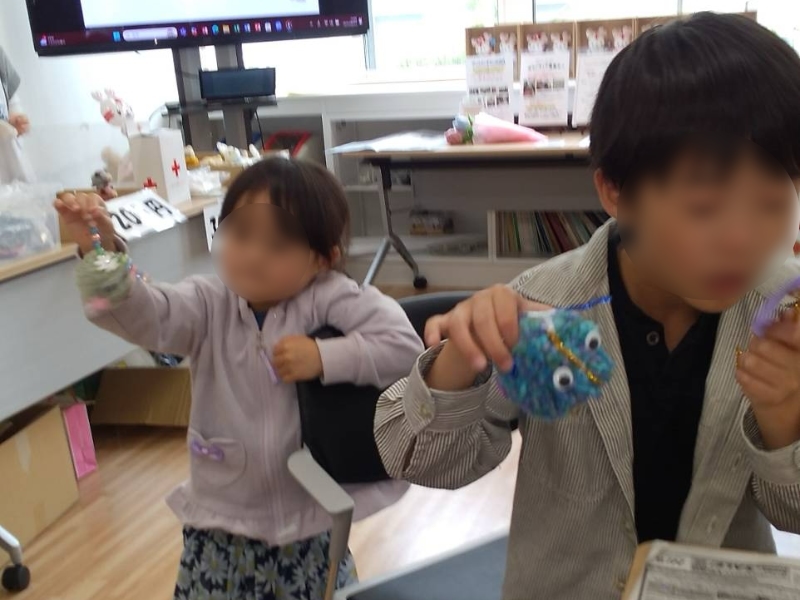 6月1日、日赤新潟県支部主催「地域ふれあい祭り」のボランティアルームで、ワンコインサロンから「毛糸で遊ぼう:体験コーナー」と「手づくりチャリティバザー」を出展し、大勢の子どもたちが参加してくれました。