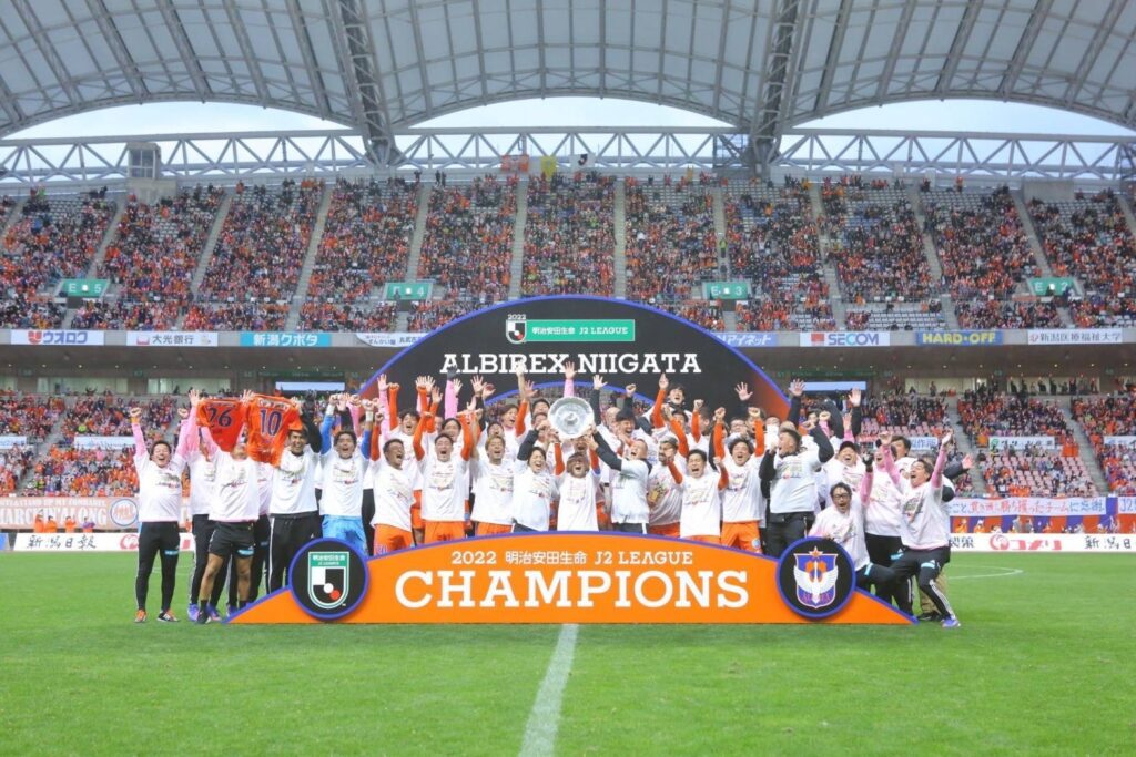 前節、30,000人以上のサポーターの前でJ1昇格を決めているアルビレックスが6年ぶりのJ1復帰!会場のサポーターの熱狂に負けずと、TVの前で応援していた私も大声を上げて喜びました。