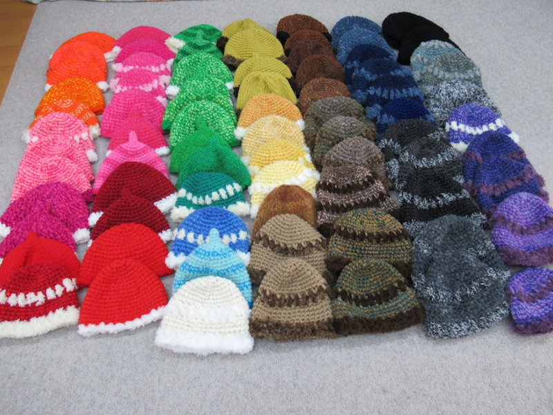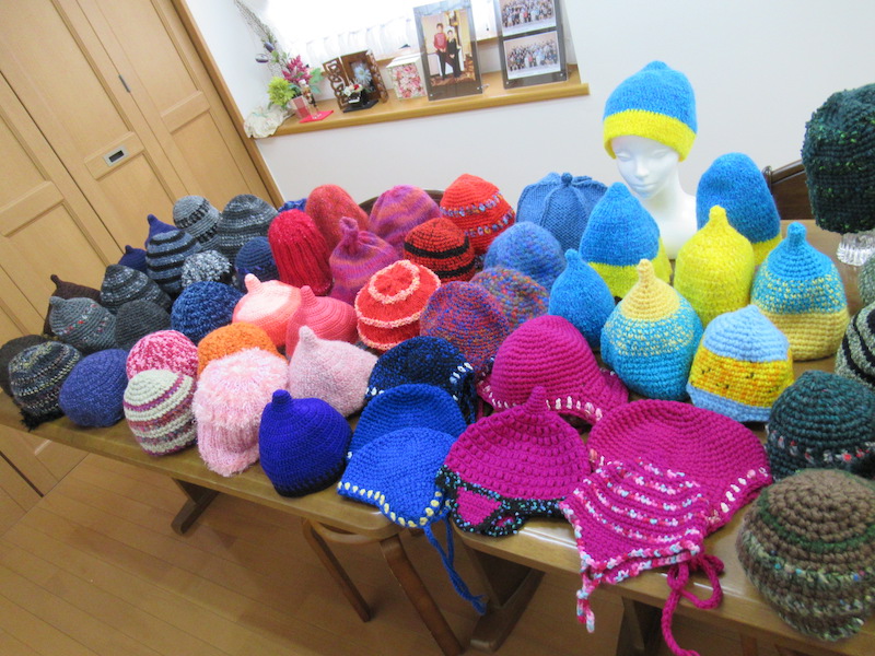また、私の趣旨に賛同してウクライナの子供たちの為に編んでくれた本田セツ子先生のベストと帽子(計20点)と、岩崎カツミ先生のマフラー(計12点)もチャリティバザーに出品予定です。
