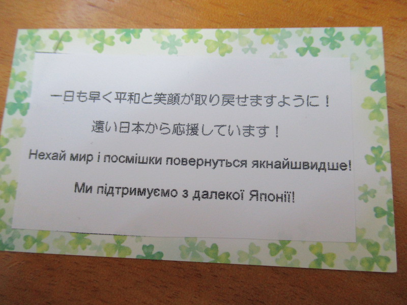 お金だと物資を送る飛行機代にもなるし、物資も現地で買ってすぐに届けることができ、その地域の経済活性化にもつながる、と言われて納得し、泣く泣くあきらめかけていたのですが、新潟市国際課からのアドバイスを受け、恐る恐る在日ウクライナ大使館に電話をしてみました。