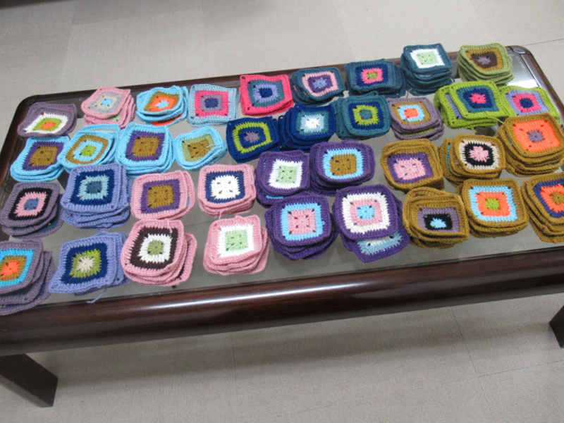 その後もワンコインサロンのボランティアクラスで編み続けて下さり、30枚のひざ掛けを寄付するという目標にもあと数枚というところまで来ました。皆さんの温かい御厚意をしみじみと実感しています。