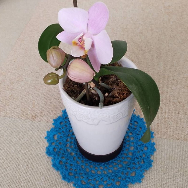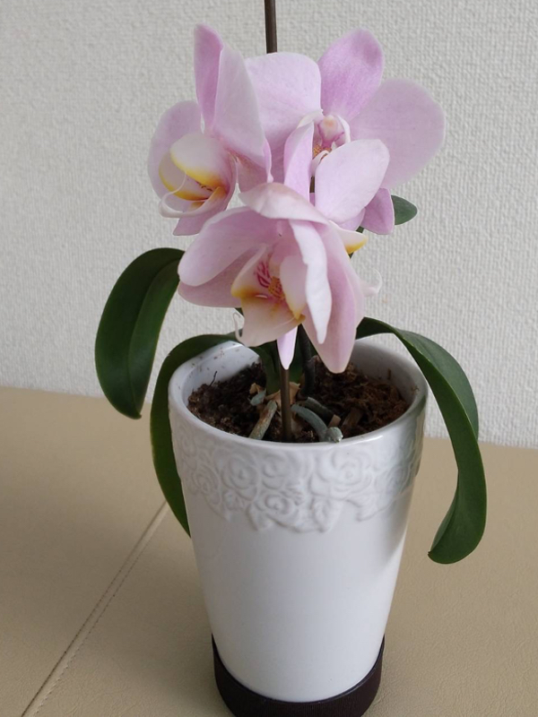 自らを鼓舞し、久しぶりに接骨院へ向かったところ、玄関に小さな一輪の花とつぼみを三つつけた胡蝶蘭が目に入りました。思わず受付の方に「可愛いですね!」とお伝えしたら、なんとその胡蝶蘭は、2年前に元気になったお礼にと私から接骨院に差し上げたお花でした。