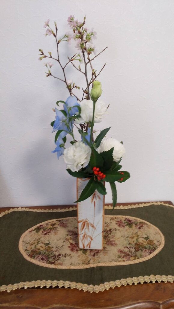 昨年の暮れに買い求めたつぼみのついた桜の枝。リビングに飾っていたら、なんとお正月には桜の花が・・・!