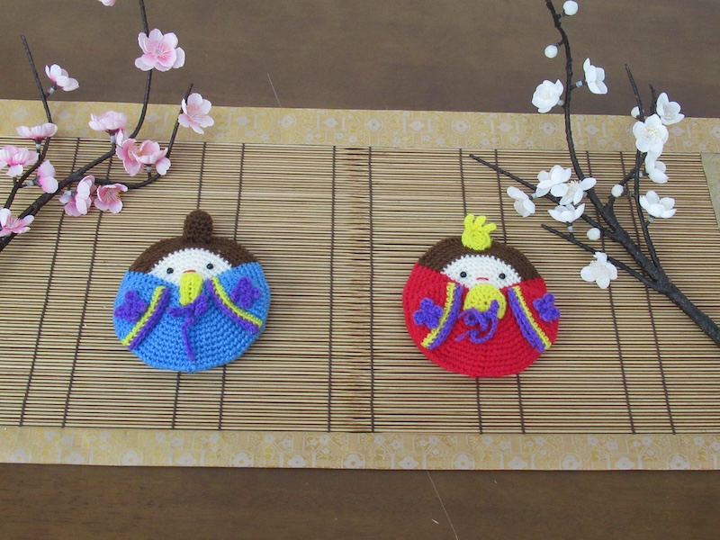すだれをバックにした可愛い手編みのおひな様に目を奪われ、来年のひな祭りまででいいので・・・と早速二人でオーダーしました。