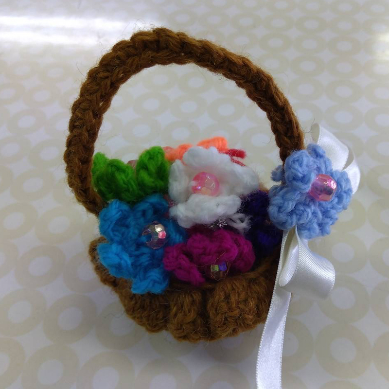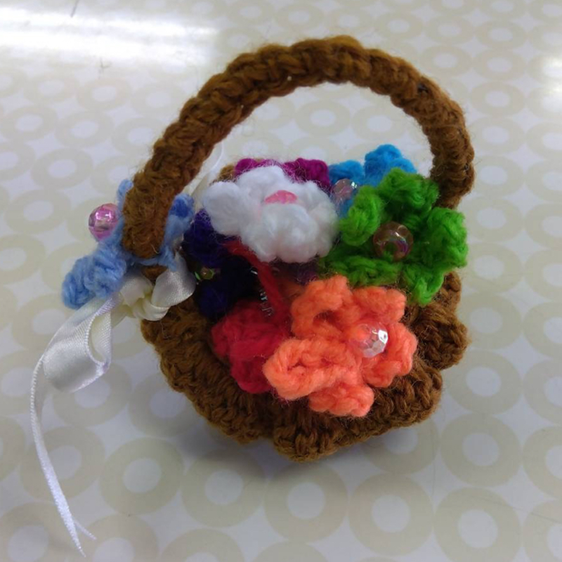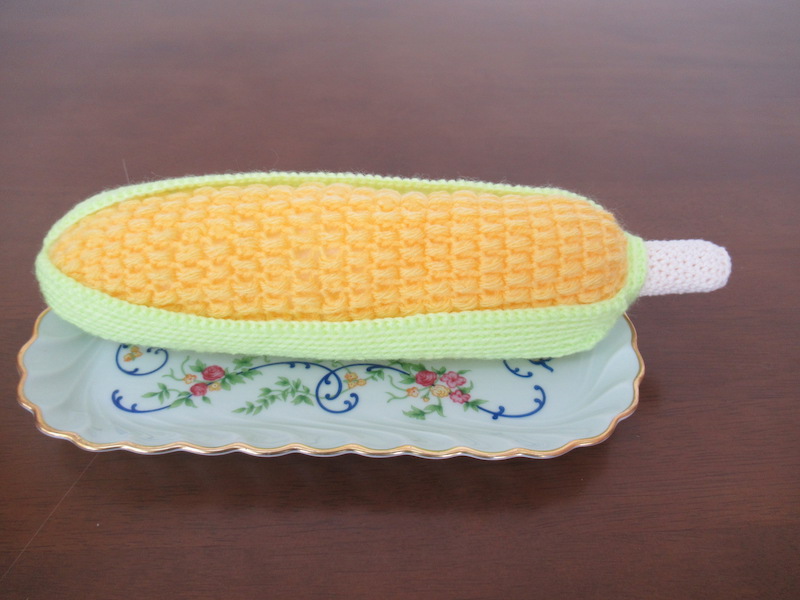 本物そっくりです!思わず口に入れたくなるくらいに・・・!特に、とうもろこしの皮の部分は細い糸で畝編みで編んでおり、この部分が一番苦労したと話してくれました。講習作品をアレンジすることが多いK・Yさんに、いつも他の生徒さんは驚いています。