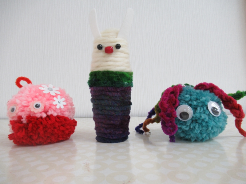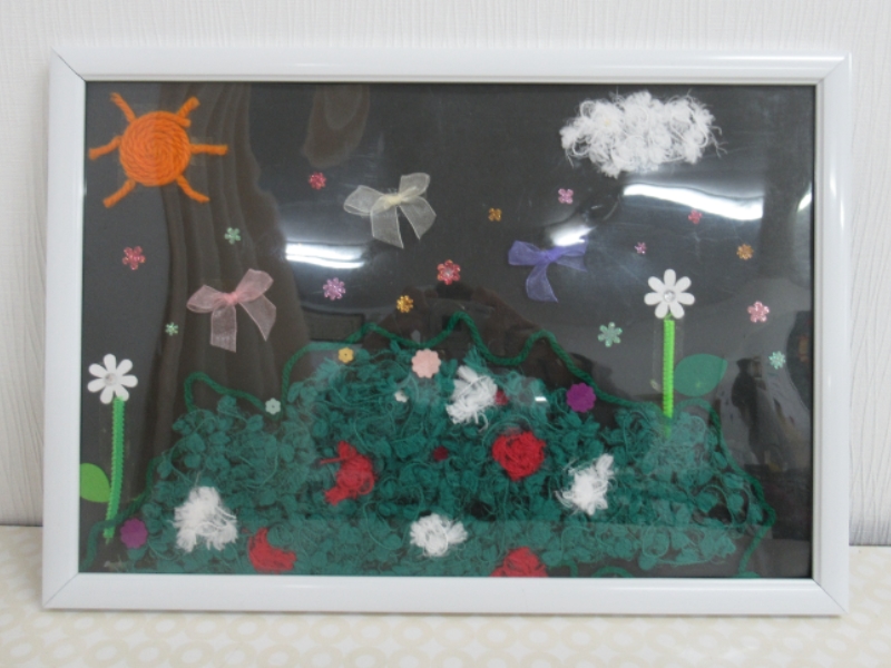 日本赤十字社新潟県支部主催の『赤十字地域ふれあいまつり2025』のボランティアルームに、子供たちを対象に「毛糸で編んだり巻いたり貼り付けたり」をテーマとしたブースを出展します。作品見本をワンコインサロンの先生方が作成してくれました。