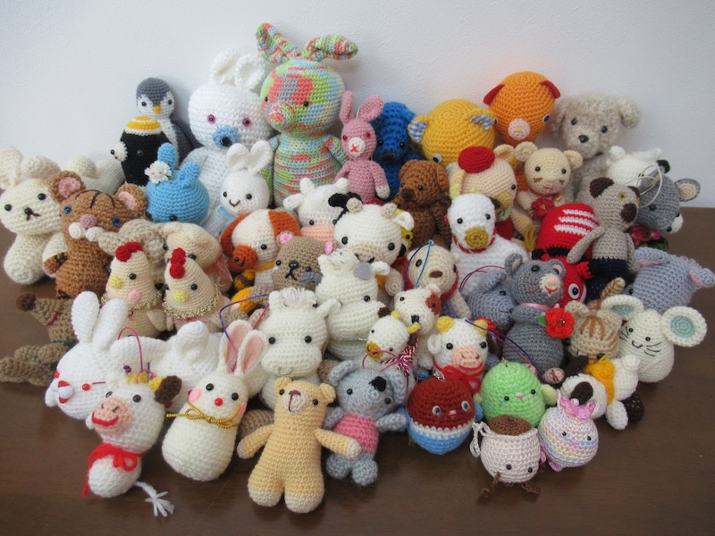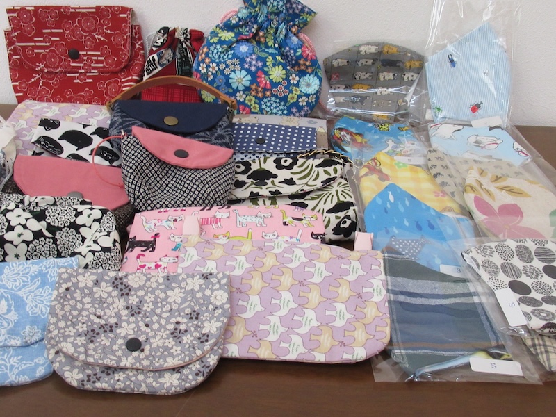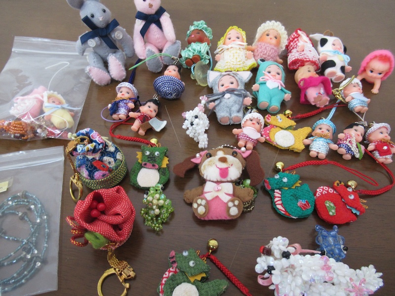 45年前の生徒さんと思わぬ再会の機会に恵まれ(2025年4月ブログ参照)、なんと編みぐるみ人形・アクセサリー小物・布ポーチ&小物・マスク等々、たくさんの作品を提供してくださいました。